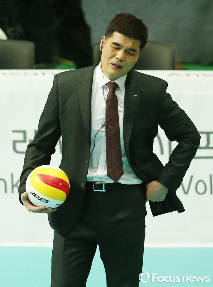 (안산=포커스뉴스) 26일 안산상록수체육관에서 열린 '2015-2016NH농협 V-리그' 남자부 OK저축은행-삼성화재 경기에서 삼성화재 임도헌 감독이 범실로 실점을 하자 안타까운 표정을 짓고 있다.