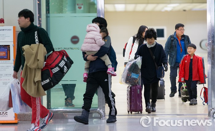 앞서 제주공항은 지난 23일 오후 5시50분부터 25일 정오까지 폭설과 강풍으로 활주로 이용이 전면 중단되며 관광객 수만명의 발길이 묶였고, 최악의 운항중단 사태가 벌어진 바 있다.(서울=포커스뉴스) 폭설과 한파로 사흘째 운항이 중단됐던 제주공항에 갇혀있던 탑승객들이 25일 오후 서울 강서구 김포국제공항 국내선으로 입국하고 있다. 2016.01.25 김인철 기자
