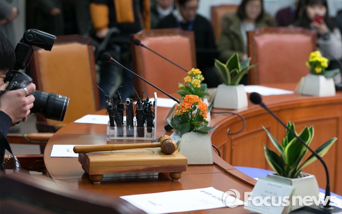 (서울=포커스뉴스) 27일 오전 서울 여의도 국회에서 문재인 더불어민주당 대표 등 지도부의 마지막 최고위원회의에 앞서 당직자들이 선물한 꽃이 자리에 놓여 있다.