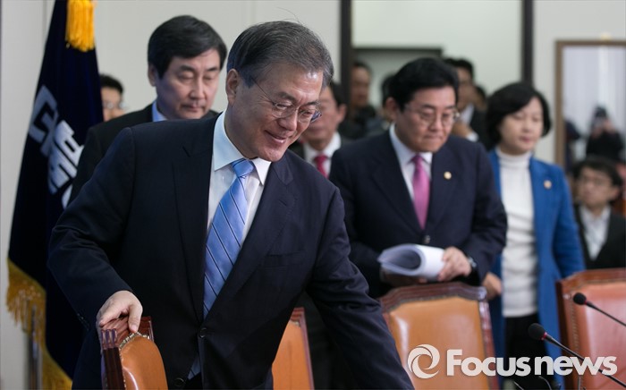 (서울=포커스뉴스) 문재인 더불어민주당 대표 등 지도부가 27일 오전 서울 여의도 국회에서 열린 최고위원회의에 참석하고 있다.