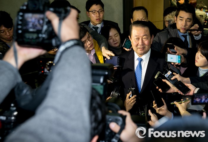 (서울=포커스뉴스) 27일 오전 서울 여의도 국회 의원회관에서 국민의당-통합신당 통합발표 기자회견을 마친 뒤 박주선 통합신당 창당준비위원장이 취재진 질문에 답하고 있다.