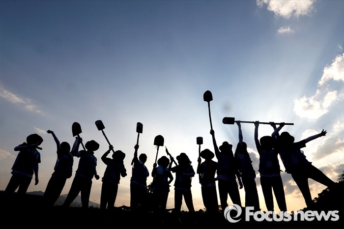 (서울=포커스뉴스) 명지대학교 2015년 동계 해외봉사활동 대원들이 20일 라오스 우돔싸이에서 초등학교 신축 봉사활동 후 기념촬영을 하고 있다. 명지대학교 자원봉사팀은 28일 까지 인도차이나 지역 타 국가에 비해 교육환경이 열악한 라오스에 교사를 신축하고 교육프로그램 등을 지원했다. <사진제공=명지대학교>