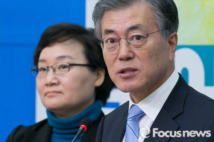 (서울=포커스뉴스) 문재인 더불어민주당 대표가 27일 오전 서울 여의도 국회에서 열린 문미옥 한국여성과학기술인지원센터 기획정책실장의 입당식을 마치고 인사말을 하고 있다.