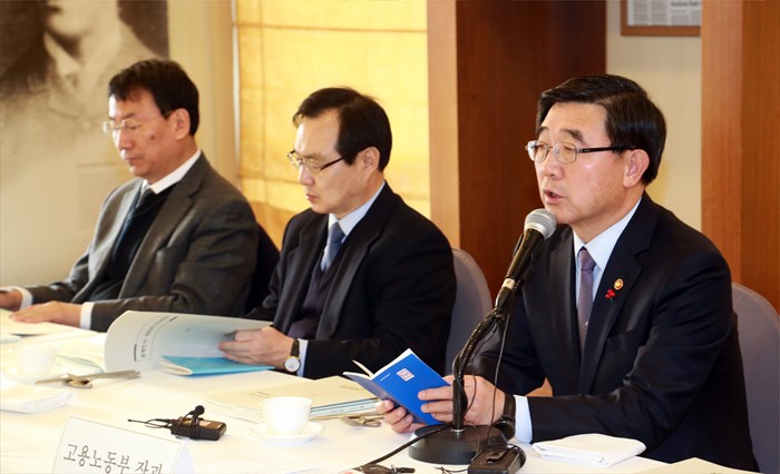 (서울=포커스뉴스) 이기권 고용노동부 장관은 28일 오전 서울 중구 프레스센터에서 열린 노동개혁 현장 실천을 위한 전문가 간담회에 참석해 의견을 수렴하고 있다. <사진제공=고용노동부>