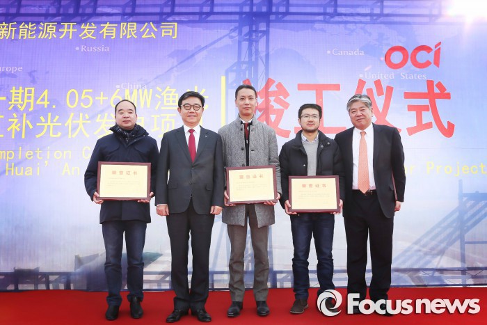 (서울=포커스뉴스) OCI는 중국 장쑤성(江苏省) 화이안(淮安)시에 위치한 발전소 현장에서 'OCI-훙쩌 태양광 발전소 준공식'을 가졌다고 27일 밝혔다.