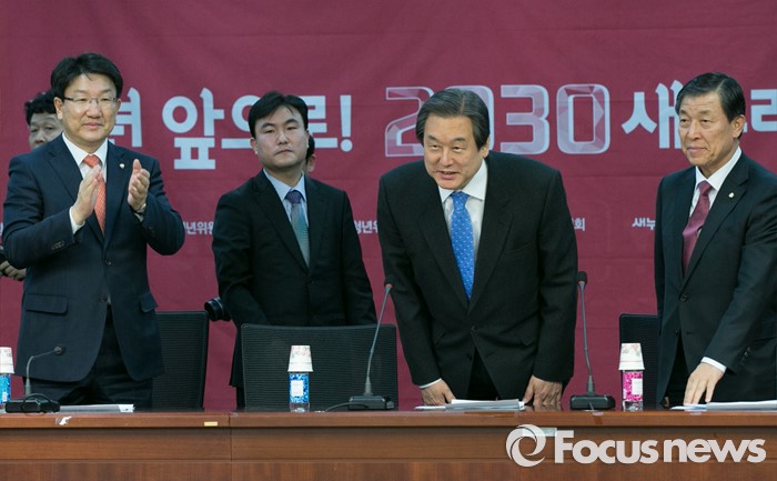 (서울=포커스뉴스) 김무성(오른쪽 두번째) 새누리당 대표가 27일 오후 서울 여의도 국회 의원회관에서 열린 청년 공천 설명회에 참석하고 있다.