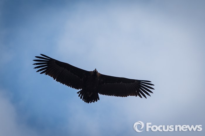 (철원=포커스뉴스) 26일 강원 철원군 한탄강 위로 독수리(천연기념물 243호)가 비상하고 있다.