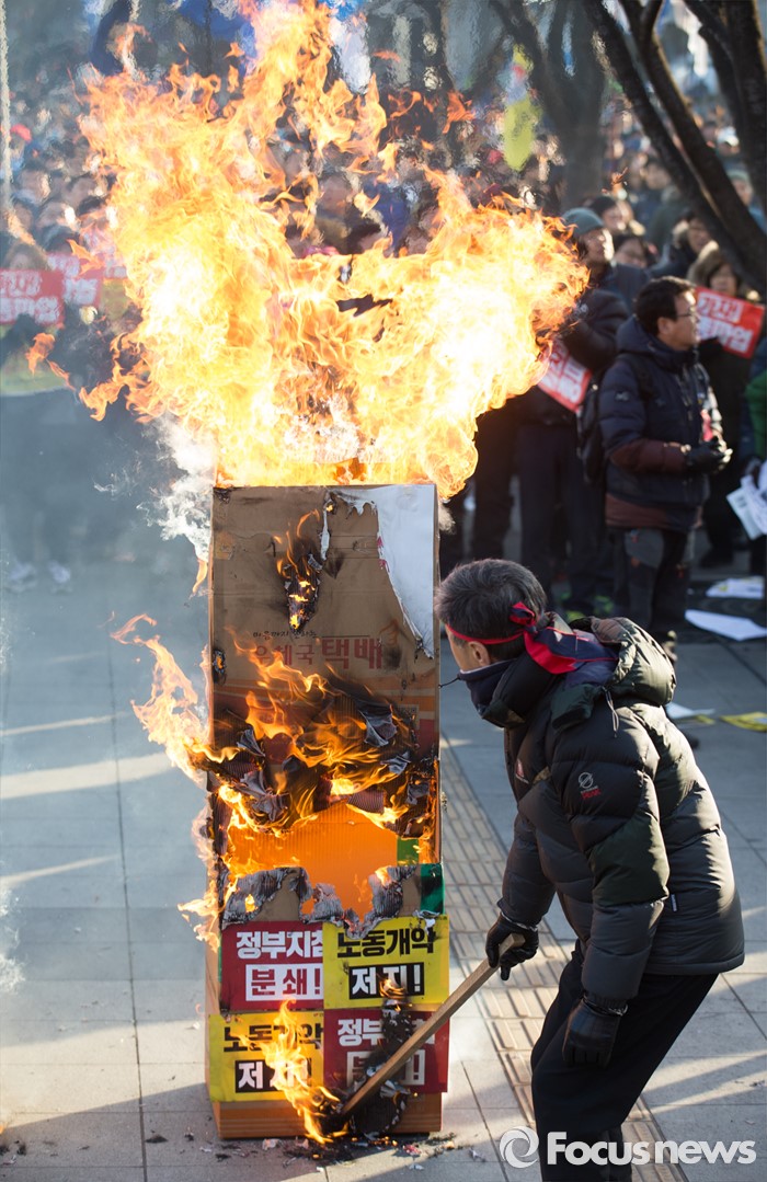 | △ 민주노총, '노동개악 화형식' |