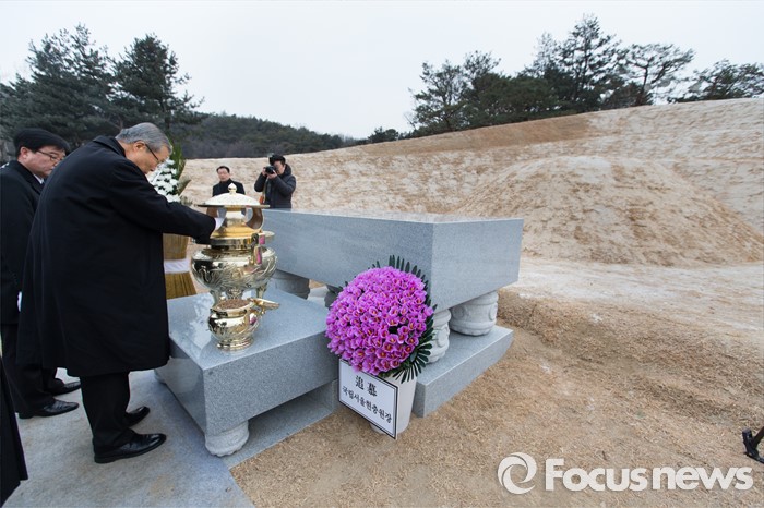 (서울=포커스뉴스) 28일 오전 서울 동작구 국립서울현충원에서 김종인 선거대책위원장 겸 비대위원장이 김영삼 전 대통령 묘역 참배를 하고 있다.