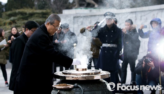 (서울=포커스뉴스) 28일 오전 서울 동작구 국립서울현충원에서 김종인 선거대책위원장 겸 비대위원장이 현충탑 참배를 하고 있다.