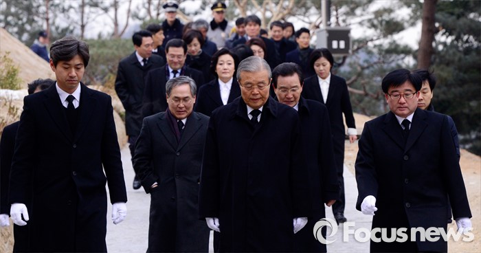 (서울=포커스뉴스) 28일 오전 서울 동작구 국립현충원을 찾은 김종인 더블어민주당 비상대책위원장이 비대위원들과 이승만 전 대통령 묘역으로 발걸음을 옮기고 있다.