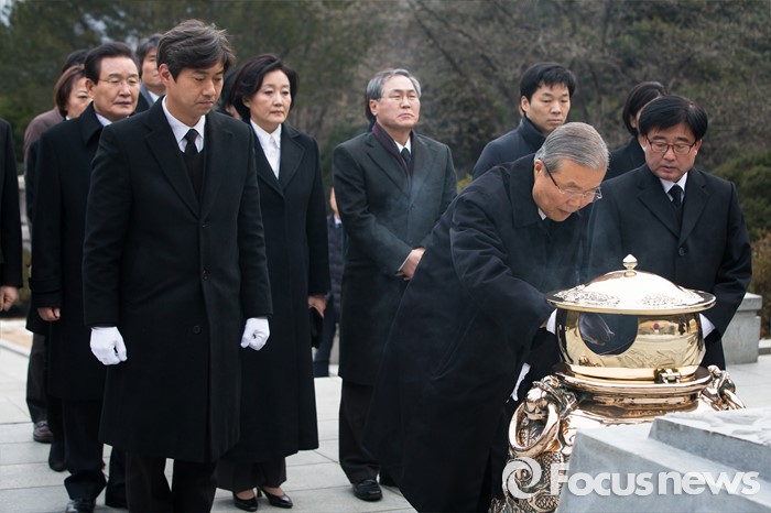 (서울=포커스뉴스) 28일 오전 서울 동작구 국립서울현충원에서 김종인 선거대책위원장 겸 비대위원장이 박정희 전 대통령 묘역 참배를 하고 있다.