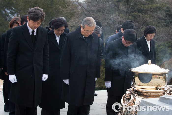 (서울=포커스뉴스) 28일 오전 서울 동작구 국립서울현충원에서 김종인 선거대책위원장 겸 비대위원장이 박정희 전 대통령 묘역 참배를 하고 있다.