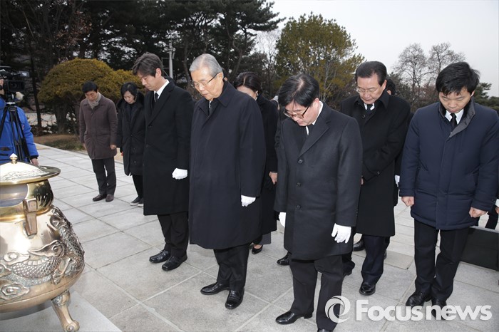 (서울=포커스뉴스) 28일 오전 서울 동작구 국립현충원을 찾은 김종인 더블어민주당 비상대책위원장이 비대위원들과 이승만 전 대통령 묘역을 참배하고 있다.