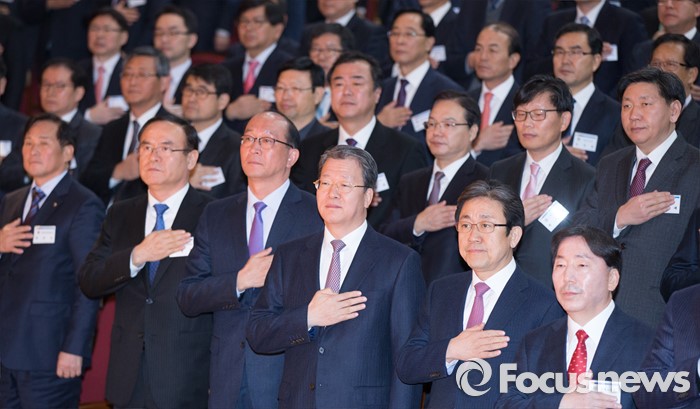 (세종=포커스뉴스) 임환수 국세청장이 28일 오전 세종시 정부세종2청사 국세청에서 열린 전국세무관서장회의에 참석해 국기에 대한 경례를 하고 있다.