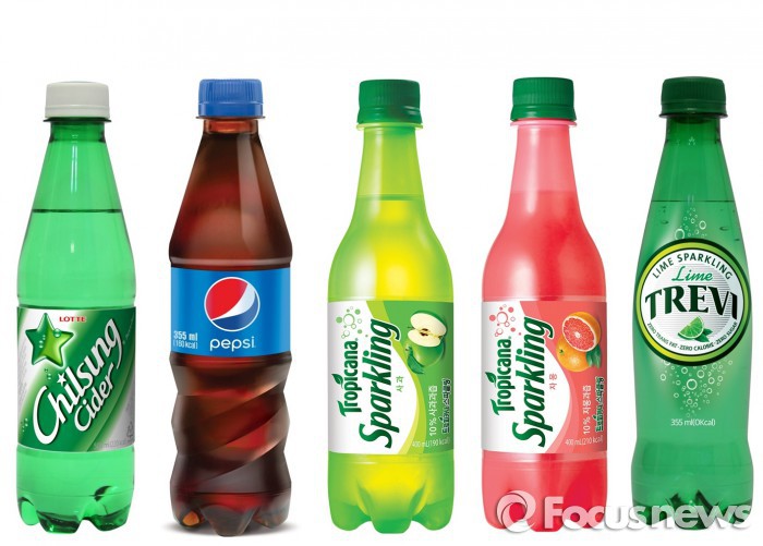 신규 업소전용 탄산페트 5종은 355㎖ △칠성사이다 △펩시콜라 △ 탄산수 트레비 라임 △400㎖ 프로피카나 스파클링 사과와 자몽이다.