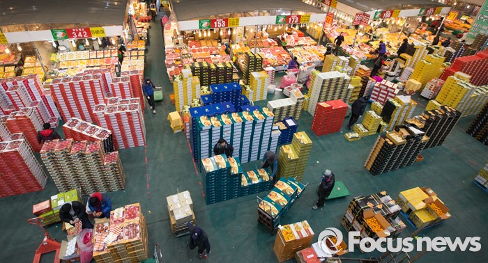 (대전=포커스뉴스) 설 멸정을 앞두고 28일 오전 대전 유성구 농수산물도매시장에서 상인들이 대목준비에 바쁘게 움직이고 있다.