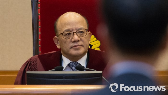 (서울=포커스뉴스) 28일 오후 서울 종로구 헌법재판소 대심판정에서 박한철 헌법재판소장이 국회 선진화법 권한쟁의 공개변론 시작을 기다리고 있다.