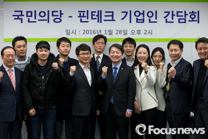 (서울=포커스뉴스) 28일 오후 서울 강남구 창업지원센터에서 열린 '국민의당-핀테크 기업인 간담회'에 참석한 안철수 인재영입위원장이 핀테크 기업인들과 기념촬영을 갖고 있다.