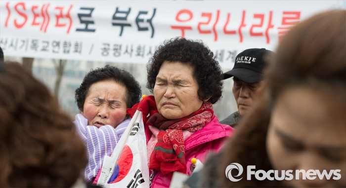 (세종=포커스뉴스) 28일 오후 세종시 정부세종청사 1동 앞에서 한국기독교총연합회, 한국교회연합회, 한국장로교총연합회, 한국교회언론회 등 종교인들이 집회를 갖고 할랄식품 테마단지 추진을 중단할 것을 촉구하고 있다.