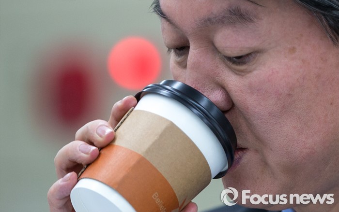 (서울=포커스뉴스) 28일 오후 서울 강남구 창업지원센터에서 열린 '국민의당-핀테크 기업인 간담회'에 참석한 안철수 인재영입위원장이 커피를 마시고 있다.
