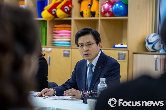 (서울=포커스뉴스) 만3-5세 유아에게 공통적으로 제공하는 교육, 보육 과정인 누리과정 예산 파행으로 보육대란이 이어지고 있는 28일 오후 서울 종로구 한 어린이집을 찾은 황교안 국무총리가 교사들과 간담회에 앞서 인사말을 하고 있다.