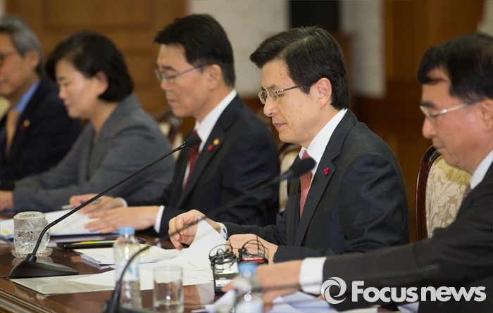 (서울=포커스뉴스) 29일 오전 서울 종로구 정부서울청사에서 열린 제7차 국민안전민관합동회의에 자리한 황교안(오른쪽 두번째) 국무총리가 자료를 검토하고 있다.