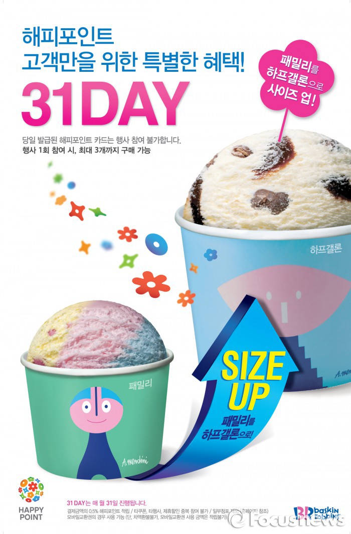 (서울=포커스뉴스) 배스킨라빈스는 오는 31일 패밀리 사이즈 아이스크림 구매 시 하프갤런 사이즈로 업그레이드 해주는 ‘31DAY’ 프로모션을 진행한다.
