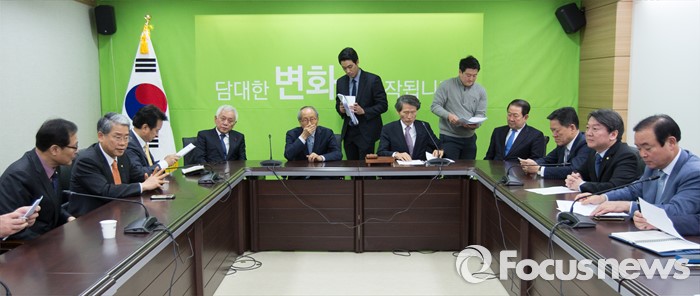 (서울=포커스뉴스) 박주선 의원이 참석한 가운데 29일 오전 서울 마포구 국민의당 당사에서 기획조정회의가 열리고 있다. 오른쪽 두 번째부터 안철수 의원, 주승용 의원, 박주선 의원, 한상진 공동창준위원장, 윤여준 공동창준위원장, 김한길 의원