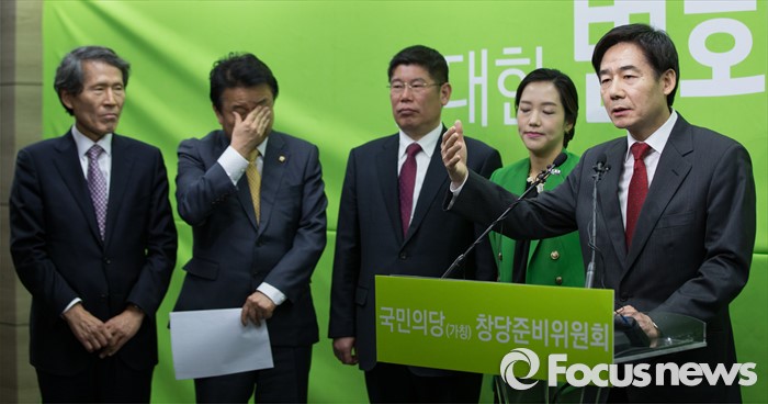 (서울=포커스뉴스) 29일 오전 서울 마포구 국민의당 당사에서 열린 방송 정치평론가 4인 입당 기자회견에서 남원 순창 예비후보로 나선 이용호 정치평론가가 인사말을 하고 있다. 왼쪽부터 한상진 위원장, 김영환 의원, 김경진 변호사, 강연재 변호사, 이용호 정치평론가.