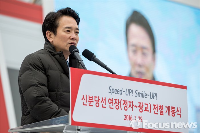 (수원=포커스뉴스) 남경필 경기도지사가 29일 오후 경기도 수원시 영통구 신분당선 광교중앙역에서 열린 '정자-광교 복선전철 개통행사'에 자리해 환영사 하고 있다.