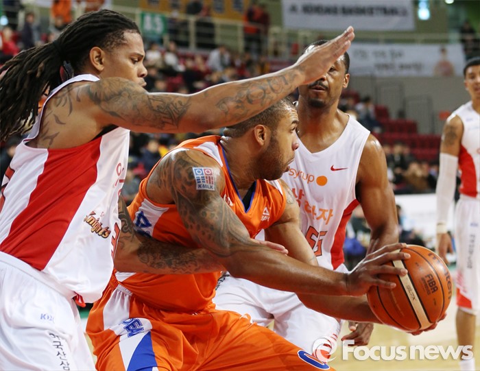 (인천=포커스뉴스) 29일 인천 삼산체육관에서 열린 2015-2016 프로농구 전자랜드-SK 경기에서 전자랜드 콘리가 SK 미첼의 마크를 받으며 패스할 곳을 찾고 있다.