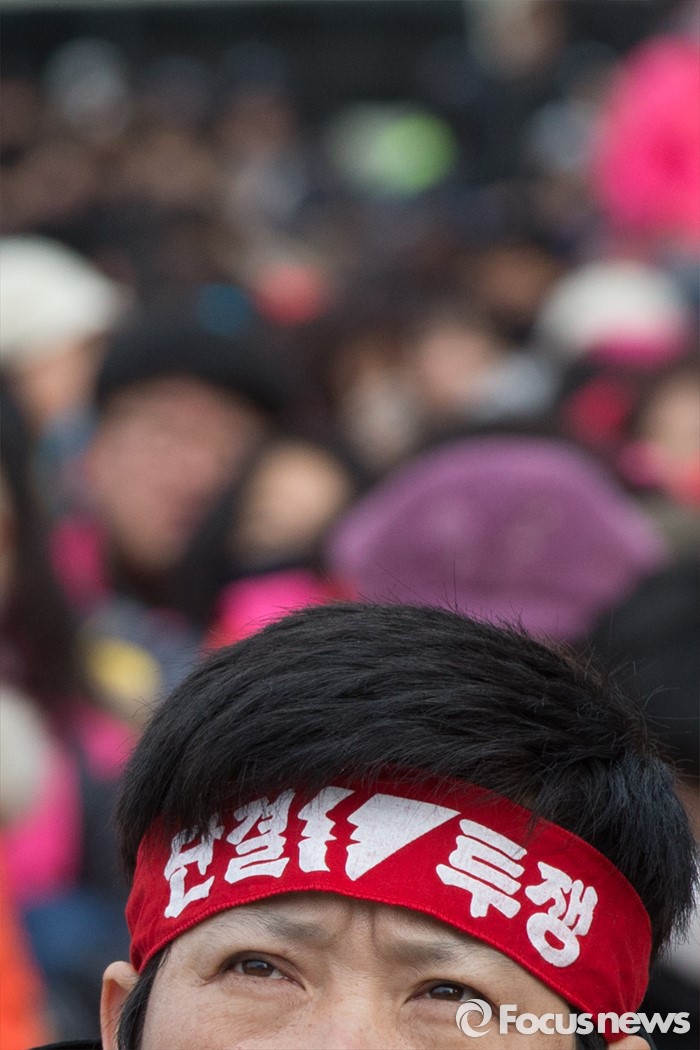 (서울=포커스뉴스) 30일 오후 서울광장에서 열린 '민주노총 전국노동자대회'에서 민주노총 조합원들이 정부의 '일반 해고'와 '취업규칙 변경' 양대 지침 철회와 노동개악 중단을 촉구하는 집회를 열고 있다.