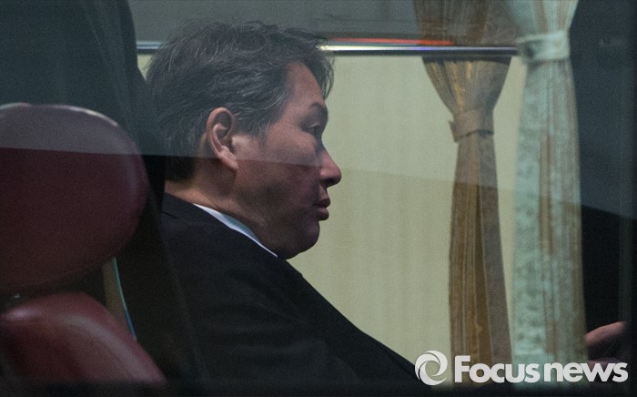 (서울=포커스뉴스) 31일 오전 서울 강남구 삼성서울병원에서 최태원 SK 회장이 故 최종건 SK그룹 창업주의 아내 노순애 여사 발인식을 마치고 장지로 향하기 위해 버스에 탑승해 있다.
