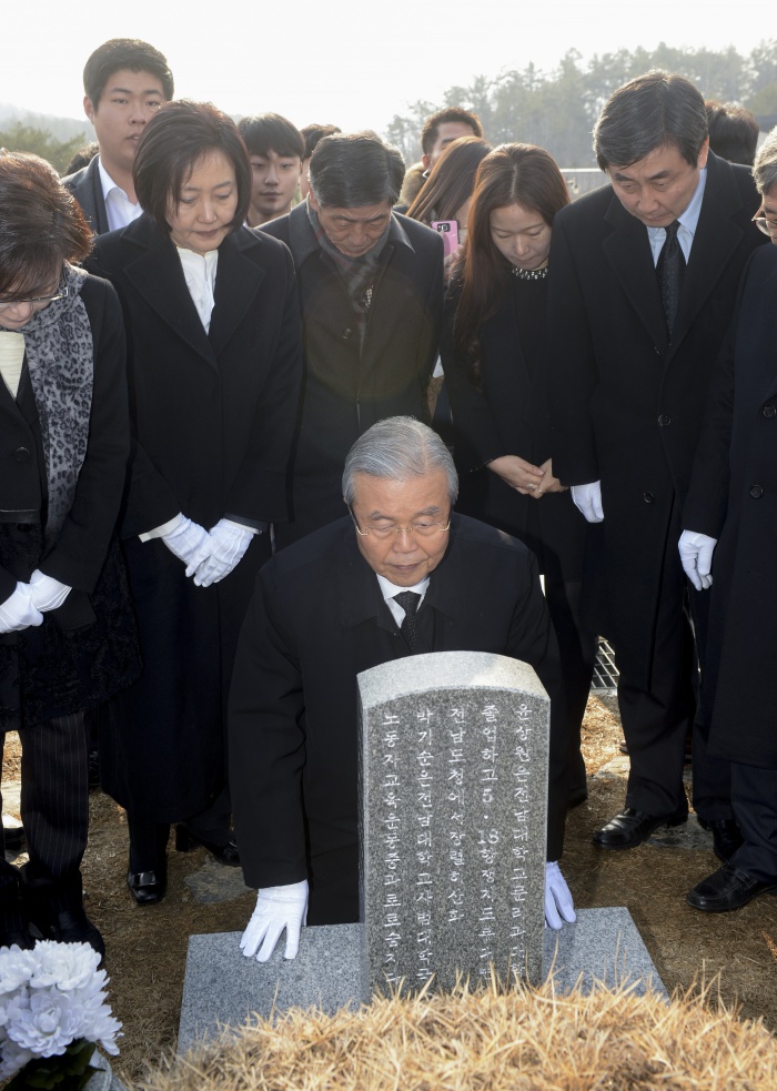 (서울=포커스뉴스) 김종인 더불어민주당 비상대책위원장이 31일 오전 광주 북구 운정동 국립 5·18민주묘지를 방문해 윤상원 열사 묘역 앞에서 국보위 참여를 사죄하고 있다. <사진제공=더불어민주당>