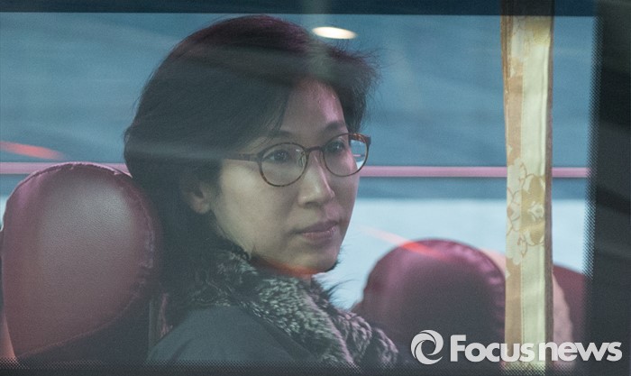 (서울=포커스뉴스) 31일 오전 서울 강남구 삼성서울병원에서 노소영 아트센터 나비 관장이 故 최종건 SK그룹 창업주의 아내 노순애 여사 발인식을 마치고 장지로 향하기 위해 버스에 탑승해 있다.