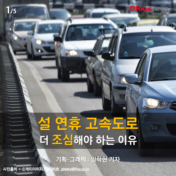 (서울=포커스뉴스) 고속도로에서 운전을 조심해야 한다는 것은 초등학생들도 아는 사실입니다. 하지만 설 연휴에는 특히 더 조심해야 한다는 것도 알고 계셨나요? 도로교통공단의 자료에 의하면 설 연휴 기간의 고속도로 사고는 다른 기간과 비교해 16%나 증가한다고 합니다. 이유가 무엇일까요? 카드뉴스로 자세한 내용을 알아보시죠.