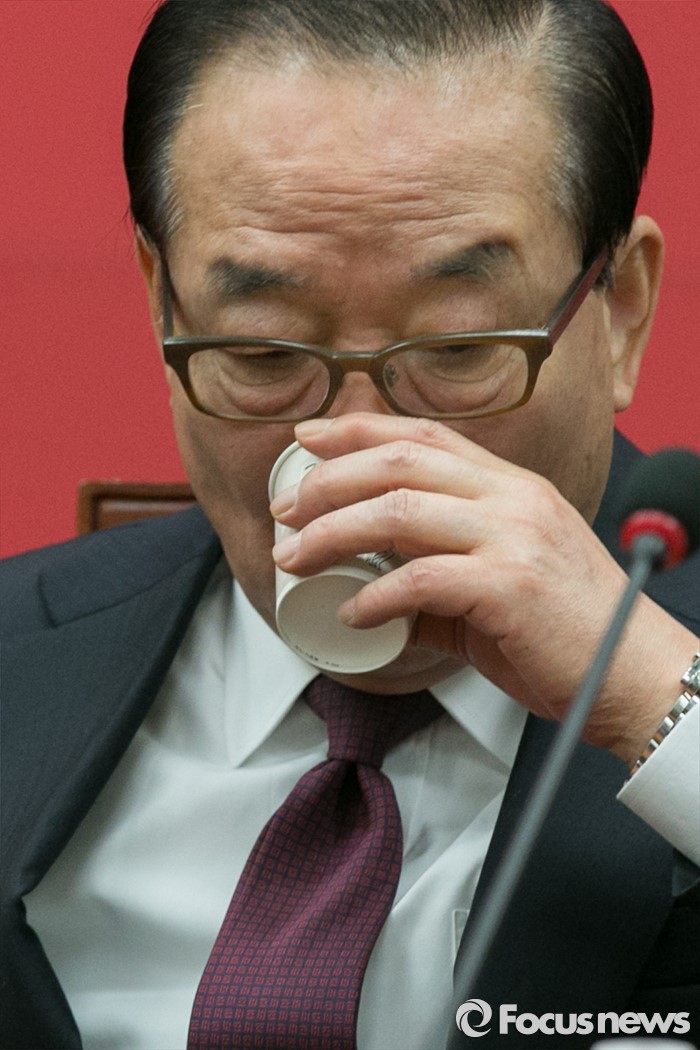 (서울=포커스뉴스) 서청원 새누리당 최고위원이 1일 오전 서울 여의도 국회에서 열린 최고위원회의에 참석해 물을 마시고 있다.