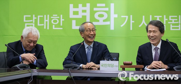 (서울=포커스뉴스) 1일 오전 서울 마포구 국민의당 당사에서 국민의당 기획조정회의가 열리고 있다. 왼쪽부터 김한길 의원, 윤여준 공동창준위원장, 한상진 공동창준위원장