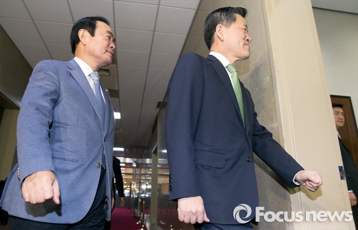 (서울=포커스뉴스) 주승용(오른쪽) 국민의당 원내대표와 장병완 정책위의장이 1일 오전 서울 여의도 국회에서 정의화 국회의장과의 면담을 위해 의장실로 향하고 있다.