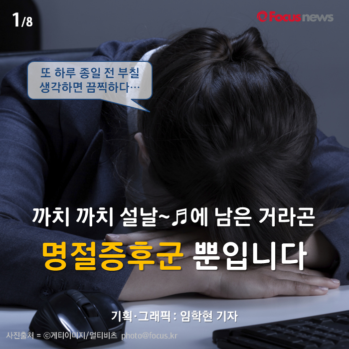 (서울=포커스뉴스) 명절마다 장거리 운전, 차례상 차리기 같은 힘든 일을 하고 나면 몸과 마음에 무리가 가기 마련인데요. 명절 연휴가 끝난 후에도 여러 증상이 남아 우리를 힘들게 하는 것을 '명절증후군'이라고 합니다. 설날을 건너뛰긴 어렵지만 명절증후군을 최소화 하기 위한 요령은 분명히 존재합니다. 카드뉴스로 자세히 알아보시죠.