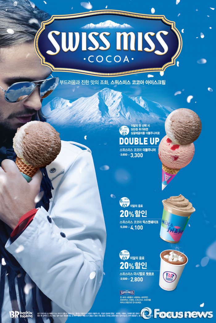 스위스미스 코코아 아이스크림은 코코아 브랜드 ‘스위스미스’와의 컬래버레이션으로 탄생했다. 스위스미스의 ‘마시멜로 코코아’를 진한 아이스크림으로 만들었다. 가격은 더블주니어 기준 3800원.