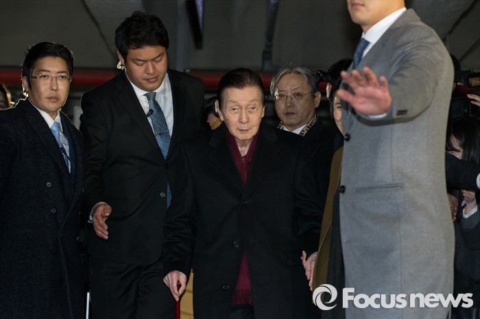 | △ 법원으로 향하는 신격호 롯데그룹 총괄회장 |