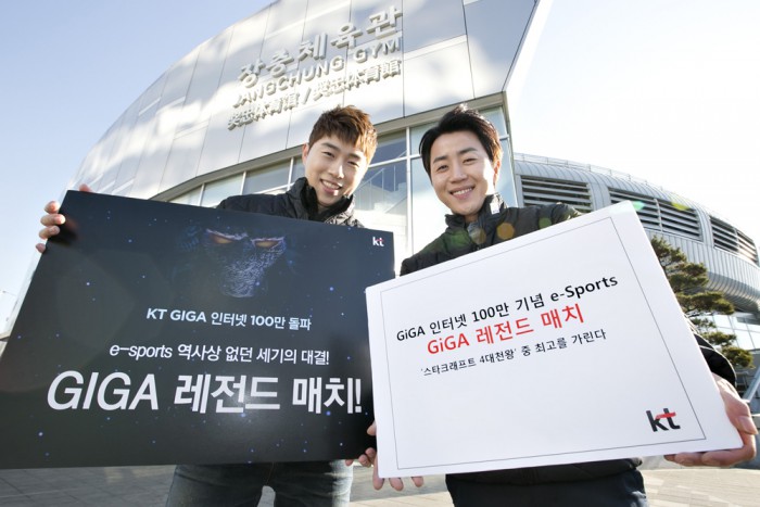 (서울=포커스뉴스) KT(회장 황창규)는 기가인터넷 110만 고객 돌파를 기념한 스타크래프트 'GiGA 레전드 매치'를 오는 20일 서울 장충체육관에서 개최한다.