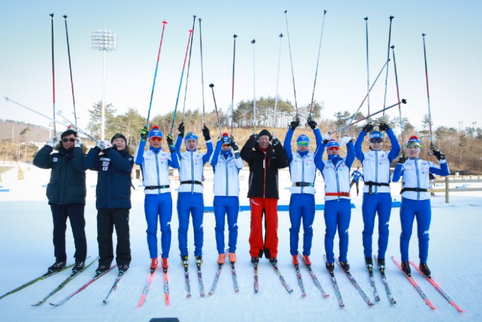 동아제약과 한미약품 등 주요 제약업체 회장들도 설 연휴에는 별다른 공식일정 없이 쉬면서 보낼 계획이다.1월23일 신동빈 롯데그룹 회장이 크로스컨트리 국가대표 선수들과 경기장을 점검한 후 기념사진을 촬영하고 있다.<사진제공=롯데> 2016.01.24 이서우 기자