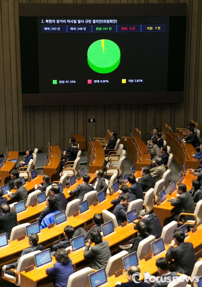 | △ 국회, 북한 장거리 미사일 발사 규탄 결의안 통과 |