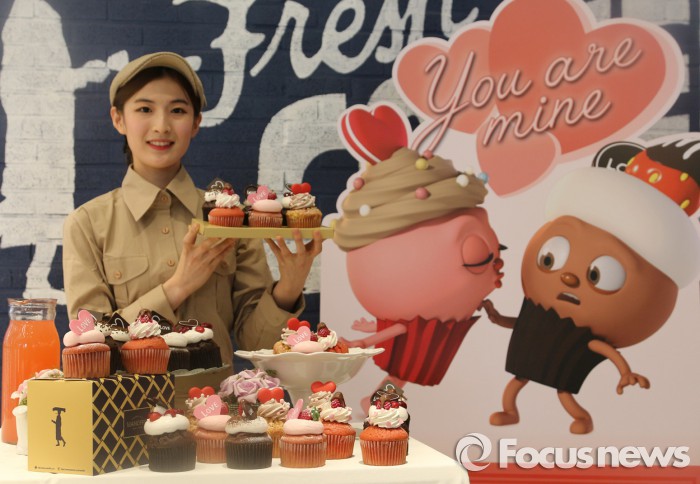 (서울=포커스뉴스) MPK그룹의 마노핀은 브레드이발소 캐릭터를 활용한 딸기와 초코맛 밸런타인데이 머핀 6종을 11일 출시했다.
