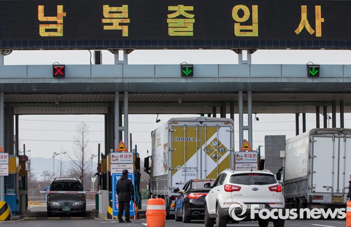 참여연대는 “한반도 방어와 무관한 사드를 배치하고 한미일 군사협력을 강화해 중국을 적대시하는 것도 핵문제나 장거리 로켓발사 문제 해결에 도움이 안 된다”며 “군사적 적대와 대결이 유지되는 신냉전 구도가 공식화될 것”이라고 지적했다.(파주=포커스뉴스) 11일 오전 경기 파주시 경의선 남북출입사무소에서 개성공단 화물차들이 출경·입경하고 있다. 2016.02.11 양지웅 기자