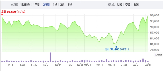 현대중공업은 지난 4일 터키 선사인 디타스시핑으로부터 15만8000DWT(재화중량톤수)급 유조선 2척을 수주한 것으로 알려졌다.주가흐름<사진출처=네이버 캡쳐>