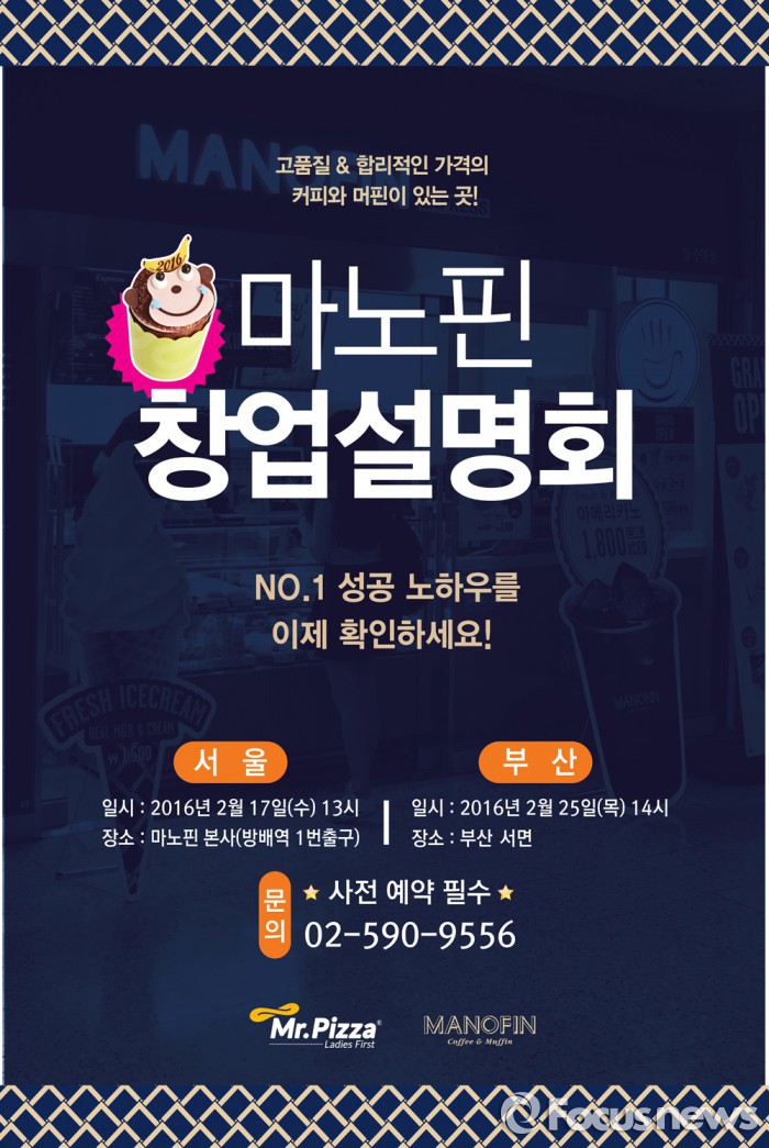 (서울=포커스뉴스) 베이커리 카페 마노핀은 서울과 부산에서 창업설명회를 개최한다. 서울에서는 오는 17일 서초구 방배동 엠피케이(MPK)그룹 본사 사옥에서 열리며, 부산 설명회는 25일 서면에서 진행된다.